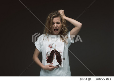 Disturbing woman showing consequence of tobacco