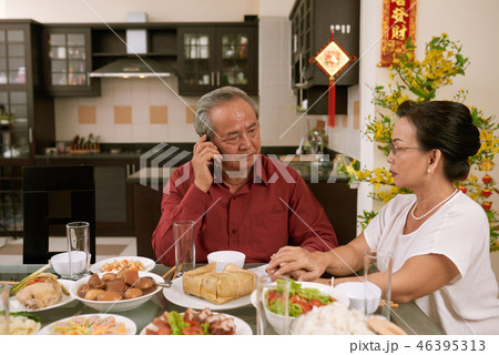 Senior couple receiving disturbing phone call