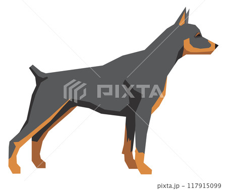 ドーベルマン フラットデザイン、横向きの犬のシンプルなイラスト