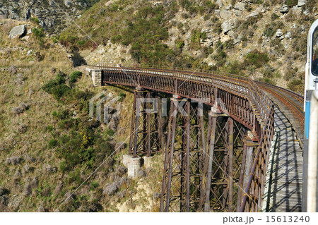 カーブする鉄橋を渡るタイエリ渓谷鉄道