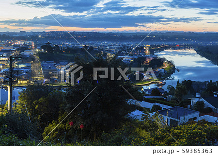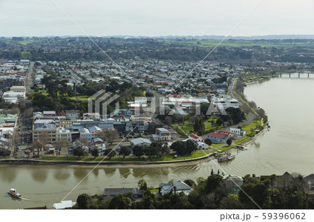 ニュージーランド ワンガヌイの小高い丘、デュリーヒルからの街並みとワンガヌイ川