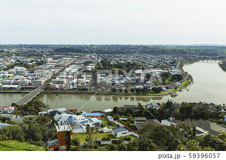 ニュージーランド ワンガヌイ ドゥリーヒルメモリアルタワーの丘からのメインストリート