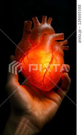 Glowing heart in hand: pulsing light symbolizing life and energy