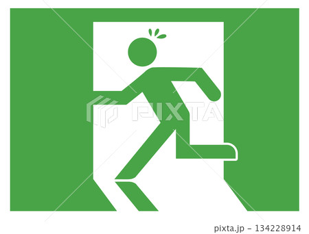 シンプルな非常口のアイコン・焦り・汗 イラスト素材 緑
