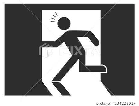 シンプルな非常口のアイコン・気づき・集中線 イラスト素材 黒