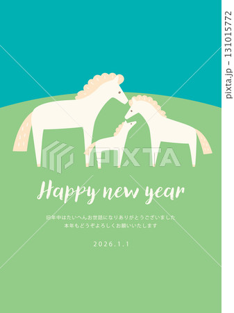 白馬の親子3頭を描いた2026年午年年賀状用ベクターイラスト