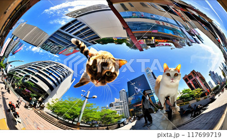 魚眼レンズ風猫
