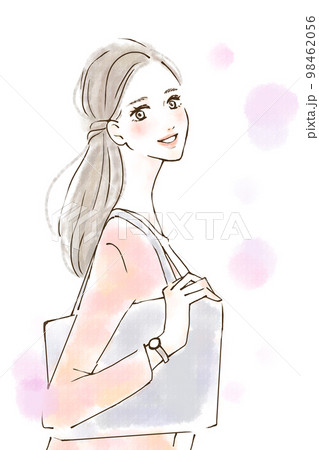 朝の通勤をする歩く女性の後ろ姿