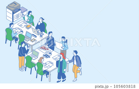アイソメトリック オフィスワークをする人々のシンプルなイラスト