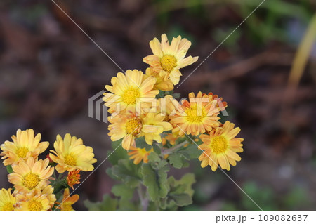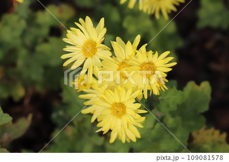 日本の秋の公園に咲く黄色いスプレーギクの花