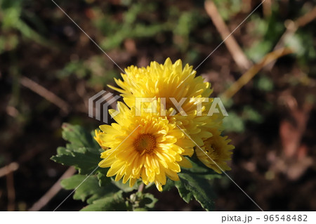 調布市深大寺元町の植物園に咲く黄色いキクの花