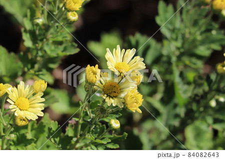 日本の秋の公園に咲く黄色いスプレーギクの花