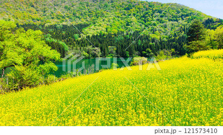 初夏に咲く菜の花 三ノ倉高原の花畑 福島県喜多方市