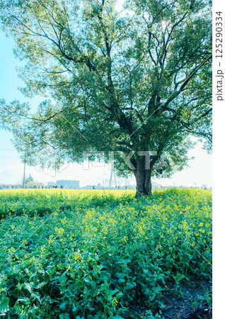 埼玉県熊谷市小八林 荒川支流の和田吉野川沿いの土手一面の菜の花畑