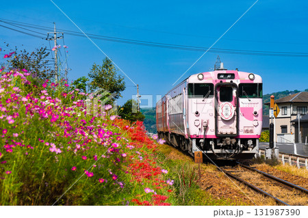 秋の花咲く津山線を走る岡山駅行き観光列車・SAKU美SAKU楽2 岡山県岡山市北区