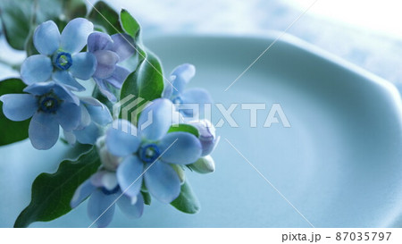 おしゃれな雰囲気の素材 文字入れスペース 青い花