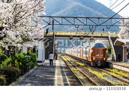 春の伯備線木野山駅を通過するデビュー間もない岡山行き新型特急やくも3 岡山県高梁市