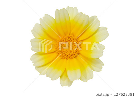 fresh marigold or tagetes erecta flower isolated on white background with clipping path and full depth of field. Top view. Flat lay