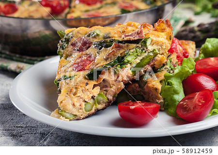 Frittata made of eggs, asparagus and tomatoes