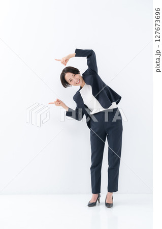 不思議なポーズを取る女性 スーツ キャリアウーマン