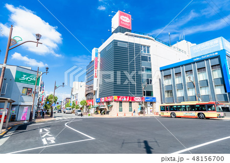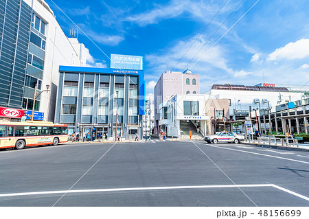 福生駅 西口前のロータリーと街並み 東京都福生市