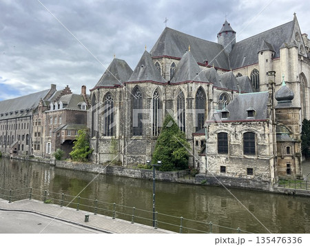 Stunning facade of saint michaels church in historical ghent, belgium
