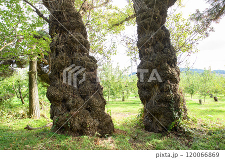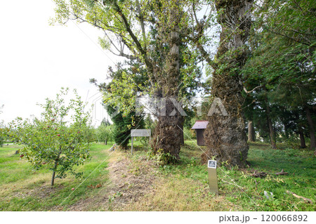 大木 夫婦ポプラの幹 広峯神社跡 青森県黒石市