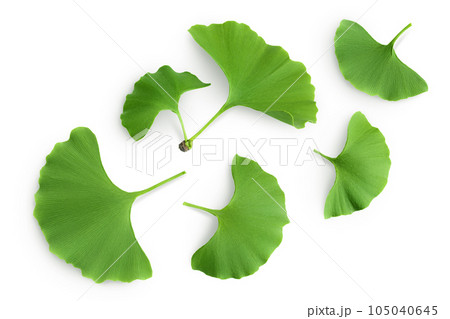 green ginkgo biloba leaves isolated on white background with full depth of field