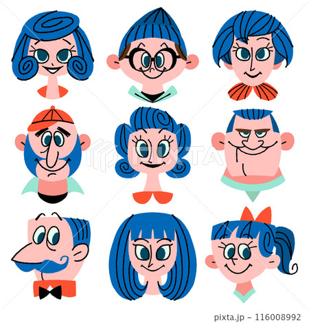 様々な表情の女性のセット フムフム・てれてれ・ボーッ・くすくす