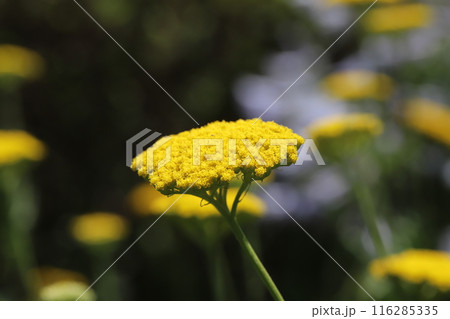 初夏の日本の公園に咲くキバナノコギリソウの黄色い花