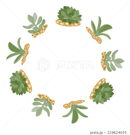 Wreath made of green succulents and stones arranged in a circular frame