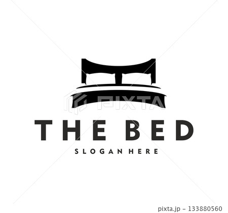 Hotel bed icon for hostel or guest house rooms rent and travel accommodation, vector emblem. Home furniture or interior design studio badge with silhouette of bed and two pillows for night sleeping