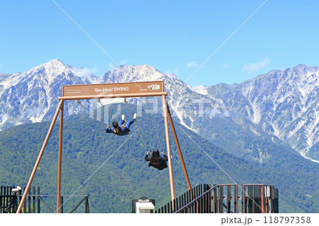 日本 長野県北安曇郡白馬村の白馬岩岳山頂にあるハクバマウンテンハーバーから見える白馬三山