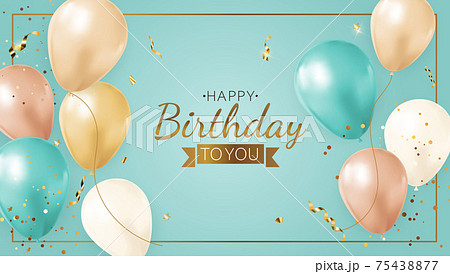 Happy Birthday Background with Realistic Balloons, frame and confetti. Vector Illustration