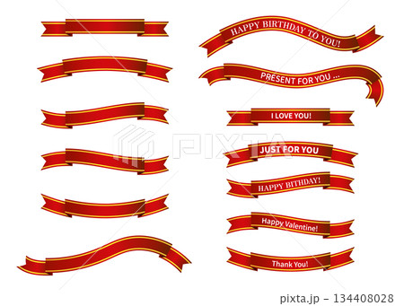 赤と金色のグラデーションのリボンのイラストセット バナー素材