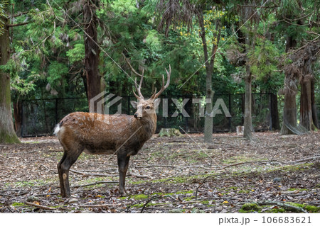 若草山山麓の鹿 ニホンジカ(オス) 奈良市奈良公園