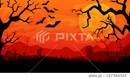 Halloween Night Scene with Bats and Tomb