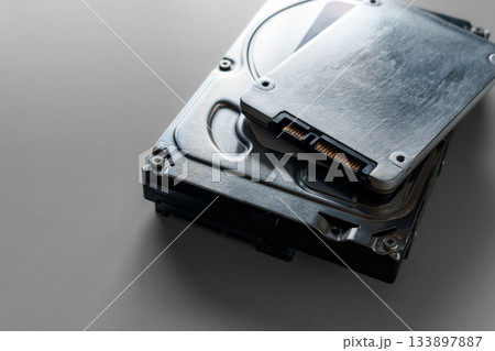 殻割したハードディスクの接写写真
