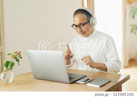 リモートワークをするシニア男性
