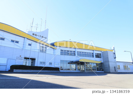 夕暮れの仙台空港 離陸するヘリ 宮城県名取市