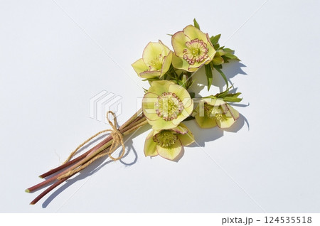 クリームイエローのクリスマスローズの花束