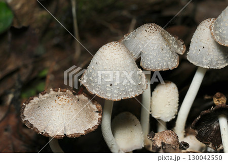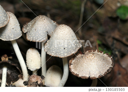 カサを開くヒトヨタケ茸のコロニー茸アップ(アウトドアフィールド菌&キノコ類マクロ撮影)