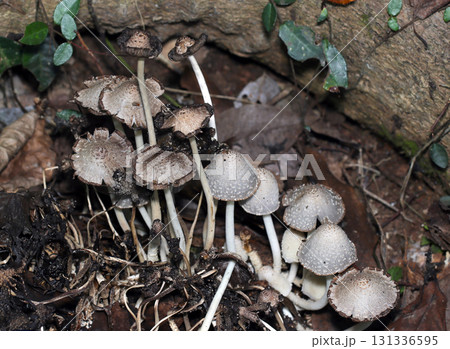 成熟していくヒトヨタケ茸のコロニーアップ(アウトドアフィールド菌&キノコ類マクロ撮影)