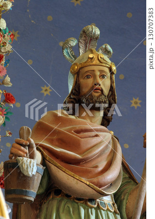 Saint Ladislaus, statue on the Sacred Heart of Jesus altar in church of Assumption in Sveta Marija na Muri, Croatia