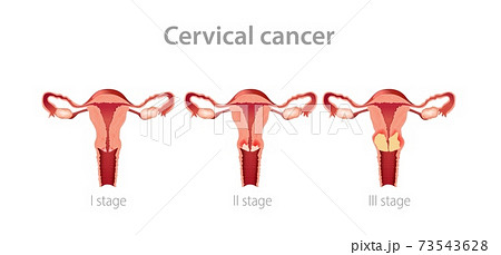 Cervical cancer development image. Cervix carcinoma stages. Female reproductive system. Anatomy. Gynecology.
