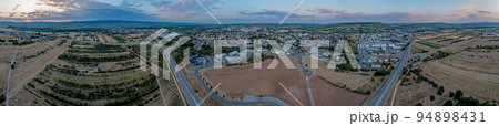 Drone panorama over German settlements Ingelheim and Gau-Algesheim