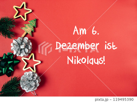 Text Nikolaus 6.12., Means Happy Nikolaus, Rustic Christmas Tree Decor