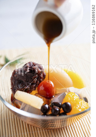 暑中お見舞いはがきテンプレート ベクター クリームあんみつ イラスト 夏