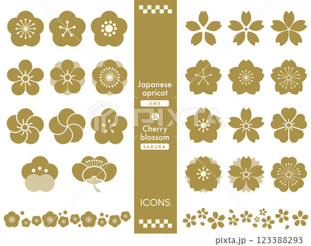春の花 梅と桜のレトロなアイコンセット