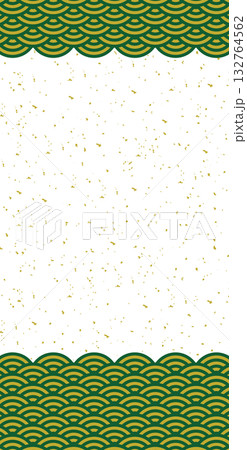 青海波と金箔の筆タッチラインのサークルフレーム/緑